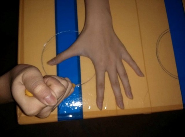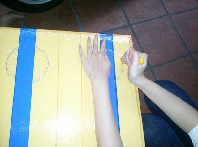 - Vẽ 2 hình tròn trên phần nắp đậy của thùng xốp.